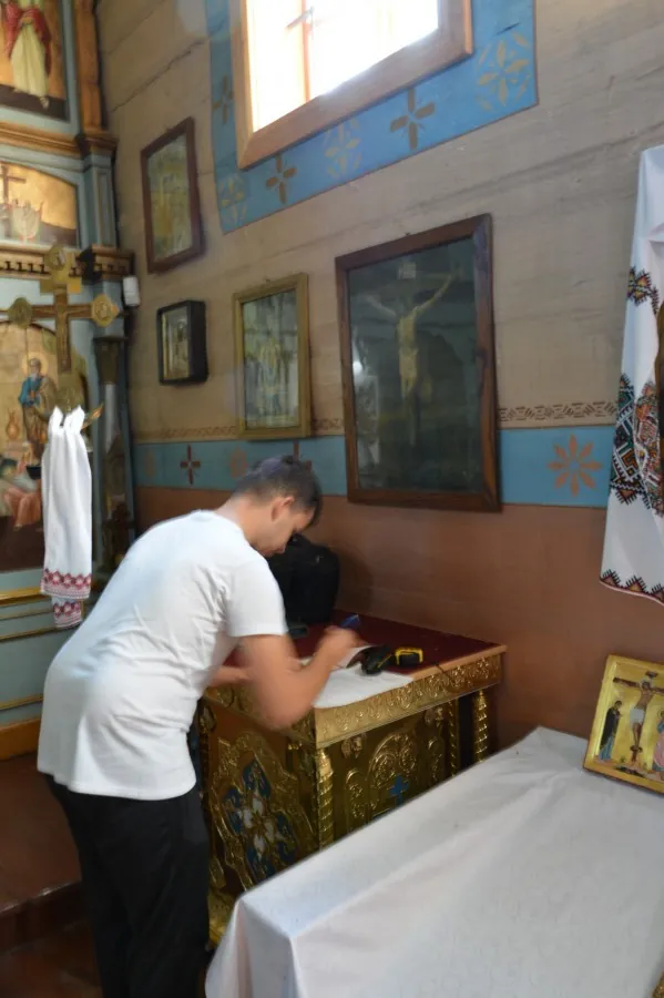 Podczas sierpniowych prac 12 osób dokonało uporządkowania posesji, na której znajduje się świątynia z wolnostojącą dzwonnicą. Prace polegały na wykoszeniu trawy i usunięciu zakrzaczeń, przycince krzewów i drzewek. Wykonano ponadto pomiary techniczne cerkwi i dzwonnicy oraz wybranych elementów wyposażenia, sfotografowano każdy obiekt, odczytano, spisano i przetłumaczono cyrylickie opisy ikon oraz dokonano merytorycznego opisu przedmiotów. Ostatecznie zinwentaryzowano w sumie 41 obiektów.