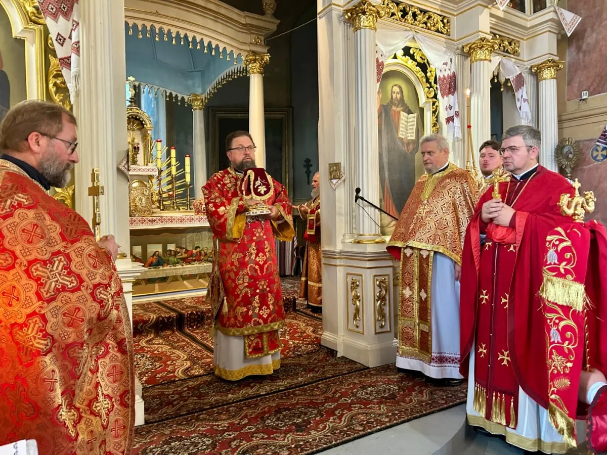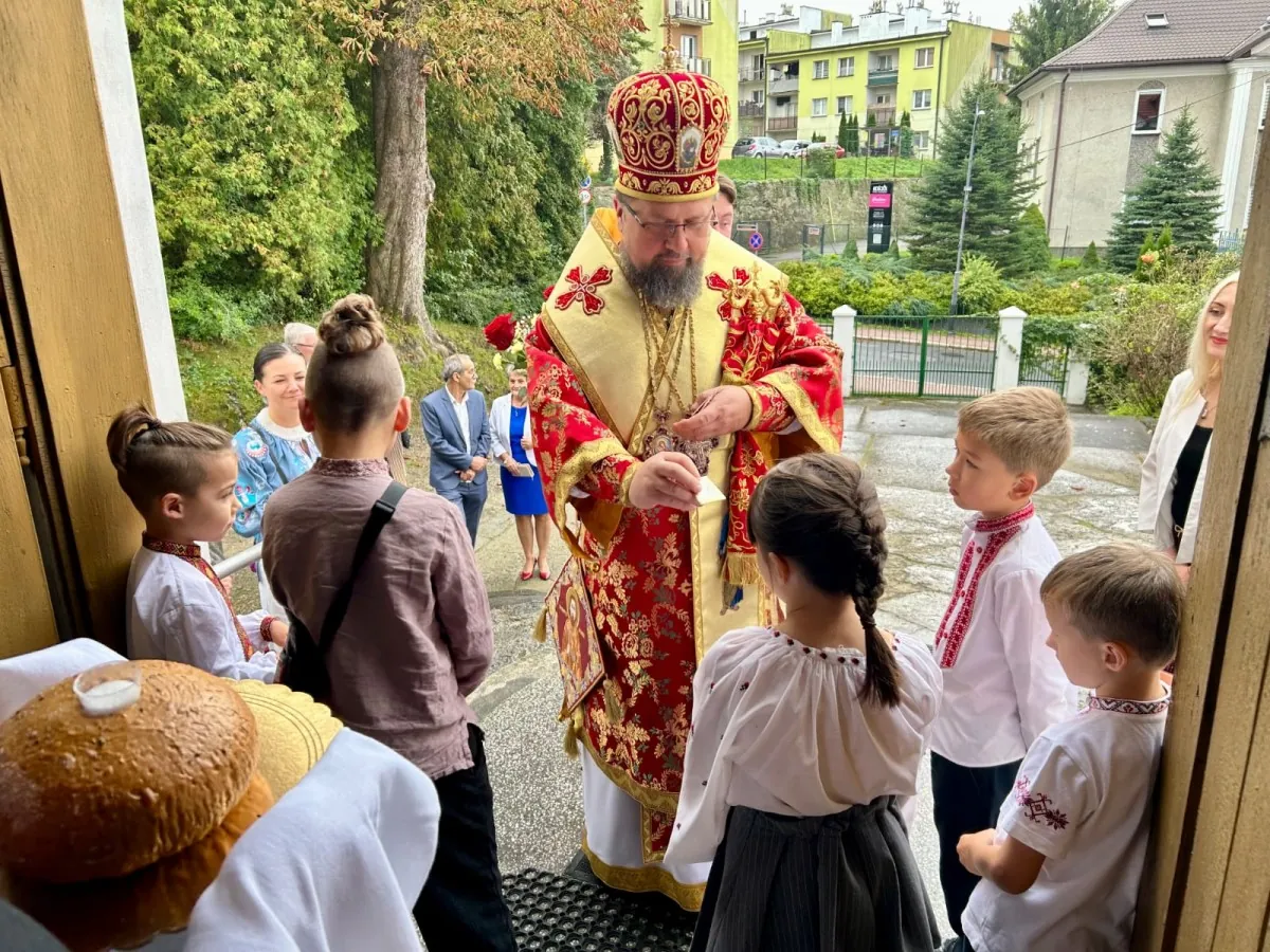 14 września Jego Ekscelencja Arcybiskup Przemyski i Gorlicki Paisjusz celebrował Św. Liturgię w sanockiej cerkwi. U wejścia do świątyni Władykę przywitały dzieci, Rada Parafialna, Starosta Powiatu Sanockiego wraz z Sekretarzem Miasta i przedstawicielem Burmistrza oraz proboszcz ks. mitrat Jan Antonowicz.